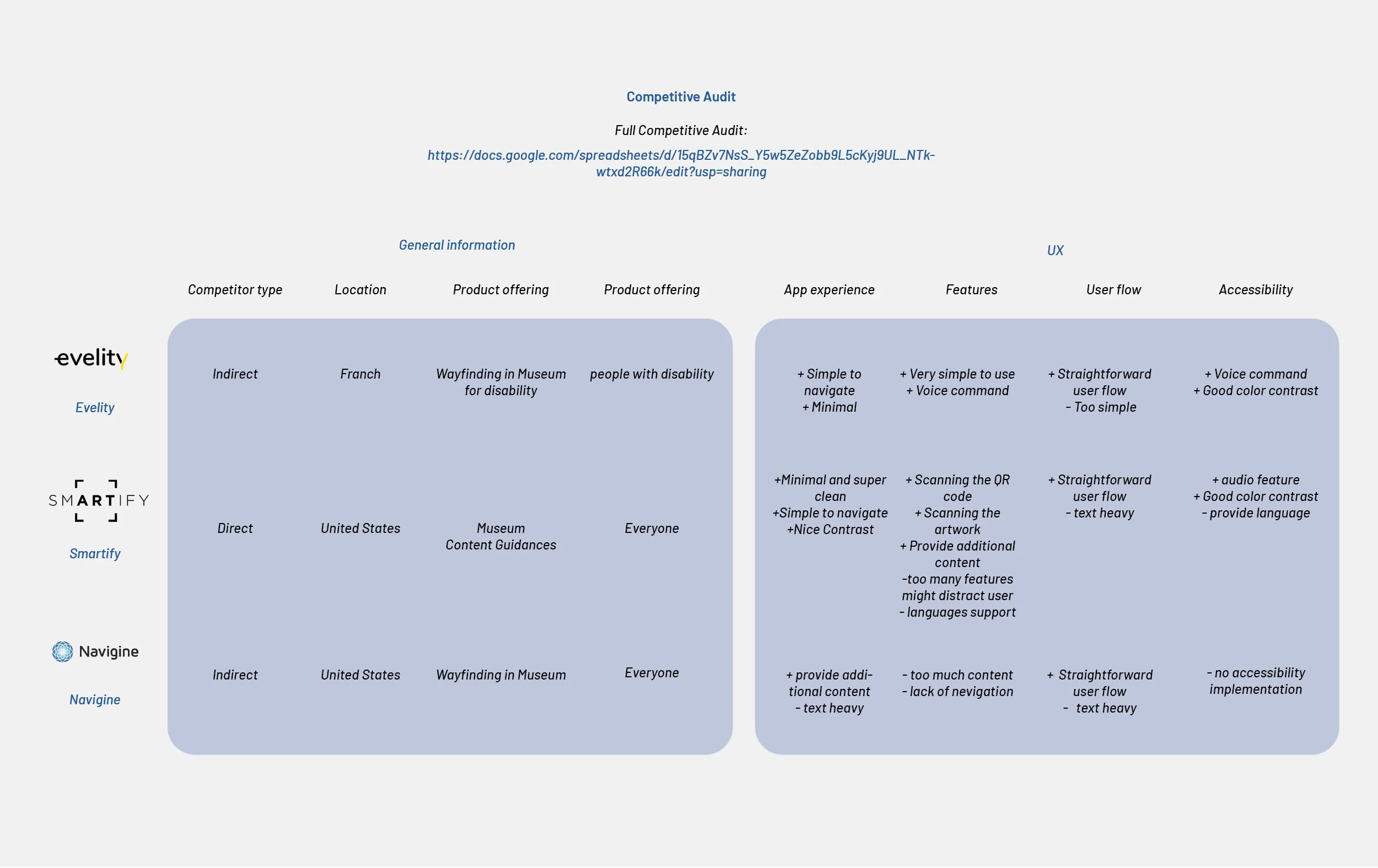 Full Competitive Audit: https://docs.google.com/spreadsheets/d/15qBZv7NsS_Y5w5ZeZobb9L5cKyj9UL_NTkwtxd2R66k/edit?usp=sharing