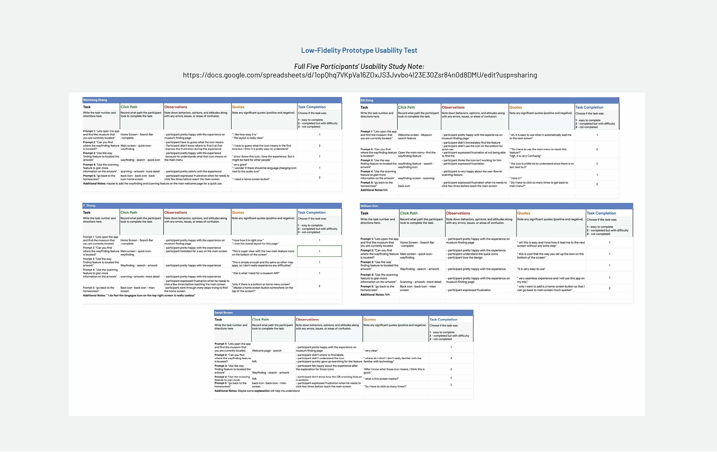 Full Five Participants’ Usability Study Note: