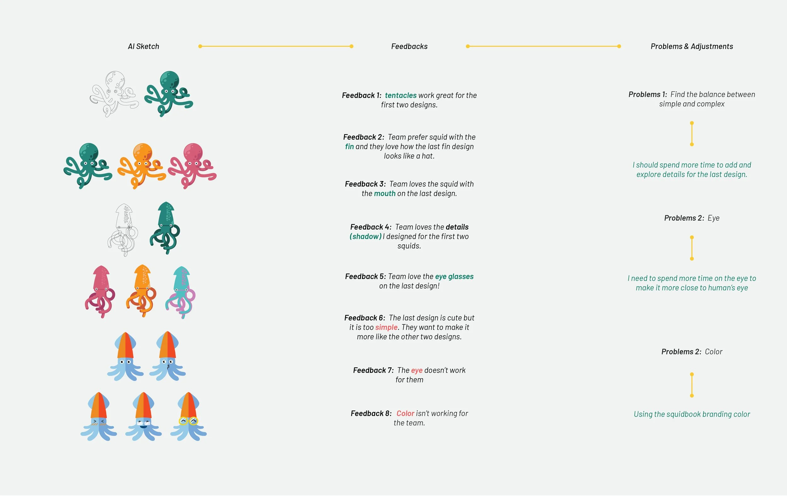 This project is a total identity redesign for Squidbooks LLC. My main audience is middle school students and teachers, therefore I create a fun and kid-friendly squid character which also need to be compatible with the company’s current design guidelines. The clean vector style fits the company’s overall design guidelines and fun elements bring joy to this mascot.